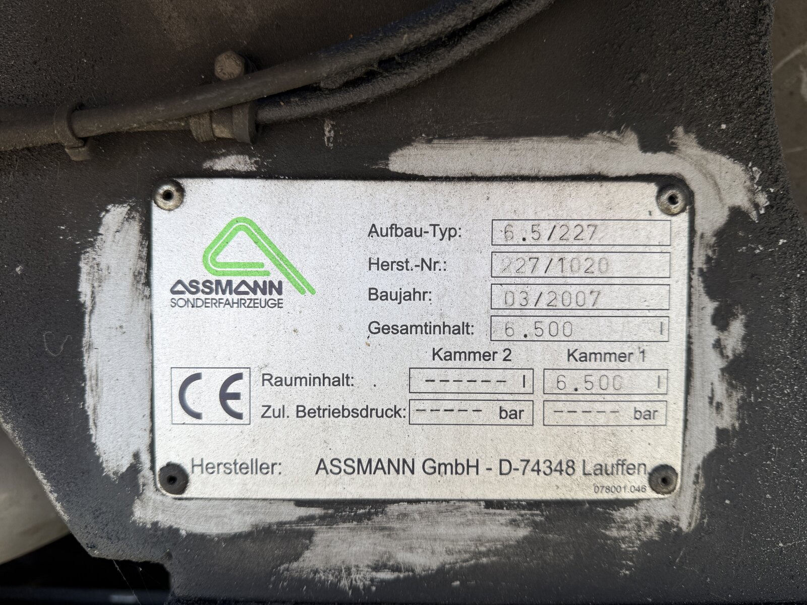 Nadbudowa HD ASSMANN DA22, typ 6,5/227/1020, 6,5 m³, pompa URACA